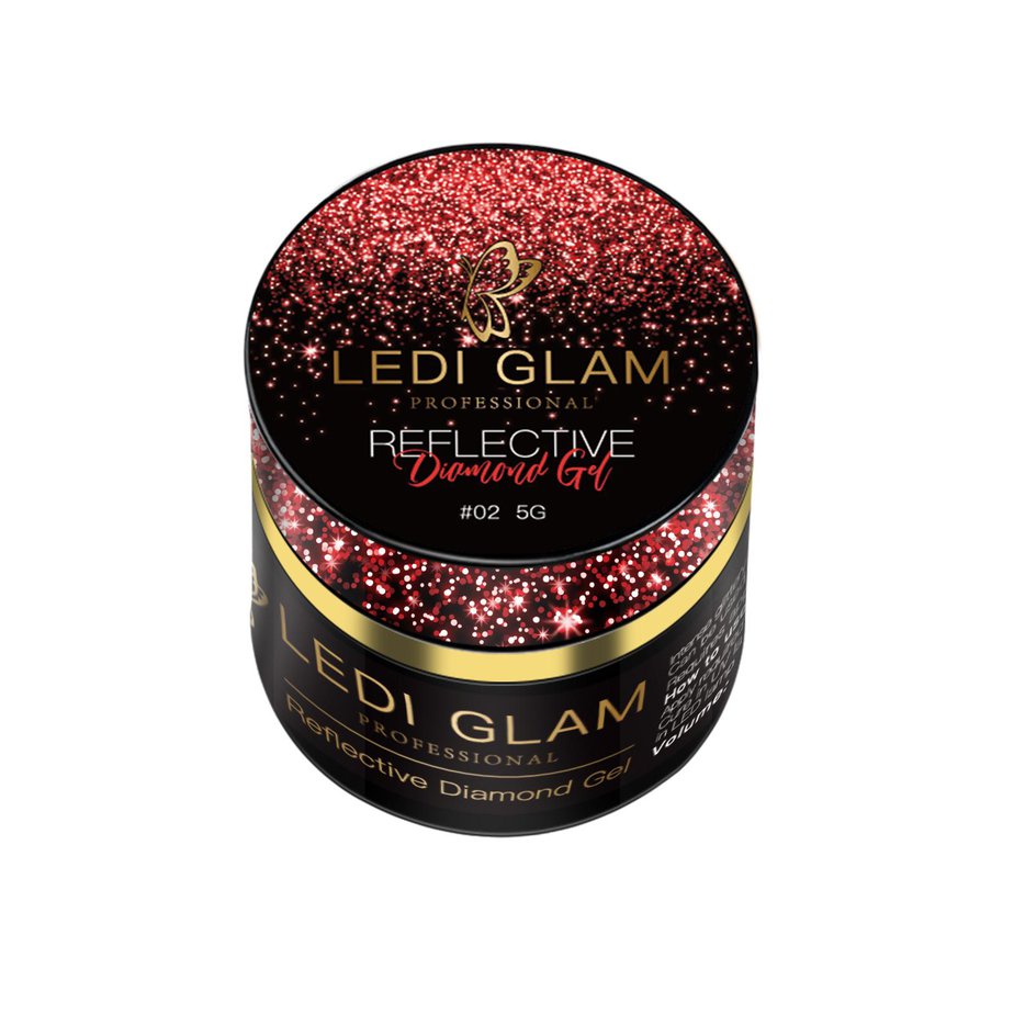 Reflective Diamond gel collection by LEDI GLAM is a super shiny light reflective gel with high durability in 9 most outstanding colors.  Curing time 60-120 sec in UV LED lamp. 5g