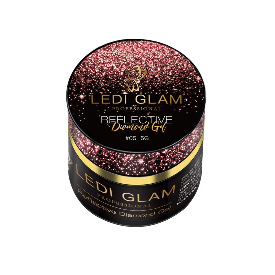 Reflective Diamond gel collection by LEDI GLAM is a super shiny light reflective gel with high durability in 9 most outstanding colors.  Curing time 60-120 sec in UV LED lamp. 5g